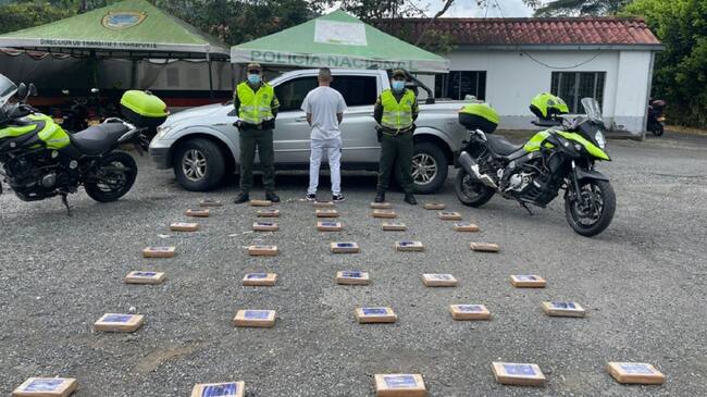 Esta persona, quien es conocida como 'Carlos', se movilizaba en un vehículo tipo camioneta donde fueron hallados 35 paquetes con 19 kilos de bazuco y 21 kilos de clorhidrato de cocaína.