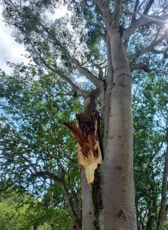 El carro de unos bañistas que disfrutaban de un paseo en la sede recreacional quedó aplastado.