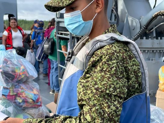 Los integrantes de la misión Navegando al Corazón del Pacífico llegaron al municipio de Mosquera, en el departamento de Nariño, para entregar ayudas humanitarias, y beneficiar a los habitantes con diferentes actividades sociales, recreativas y de salud.