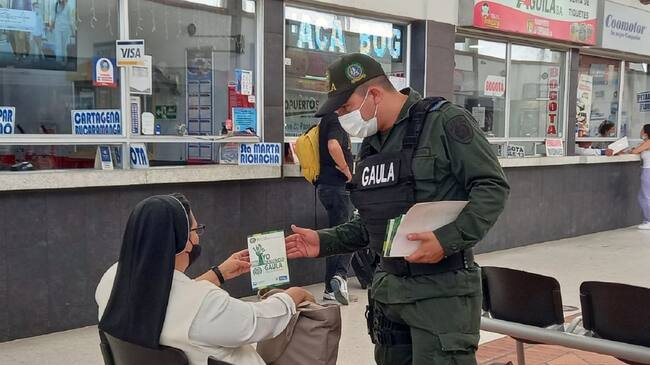 En la terminal de Honda en la zona norte del departamento funcionarios del Gaula realizaron acciones de prevención con los viajeros, conductores y las diferentes empresas del transporte.