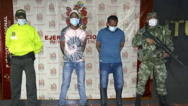 Autoridades lograron la captura de dos presuntos integrantes del Grupo Armando Organizado Residual, estructura 48, autodenominados ´Comandos de Frontera´, en la vereda Puerto Colón, del municipio de San Miguel, Putumayo.
