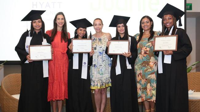 Durante el evento de graduación, Sarah Valencia, Directora de Ventas y Mercadeo de Hyatt Regency Cartagena, Angeline May, Directora de Recursos Humanos del Hotel y Catalina Escobar, Presidenta de la Fundación Juanfe, otorgaron los respectivos reconocimientos a las practicantes, quienes se han inspirado en la historia de vida de Alexandra Bueno, Gerente General de Hyatt Regency Cartagena, pues fue madre adolescente y ahora lídera este hotel.