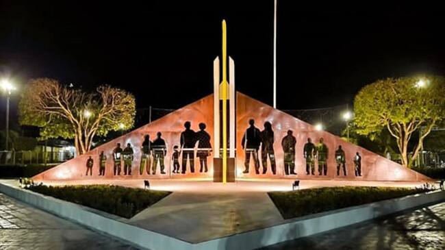Se trata de una estructura metálica en forma triangular que adentro tiene la silueta de varias personas, y es un homenaje a las víctimas que han sido asesinadas o que han sufrido de la violencia en la región del Catatumbo en Norte de Santander.