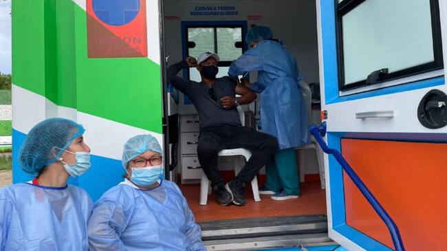 La unidad móvil instalada a un costado de la vía permite aplicar todo el protocolo de atención, desde la recepción, verificación en la base de datos Mi Vacuna, aplicación del biológico, observación posterior a la vacunación y entrega del carnet.