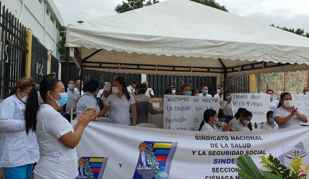 Un grupo de empleados del Hospital San Cristóbal del municipio de Ciénaga, Magdalena están protestando para exigir el pago de su salarios, deuda que completa cuatro meses.