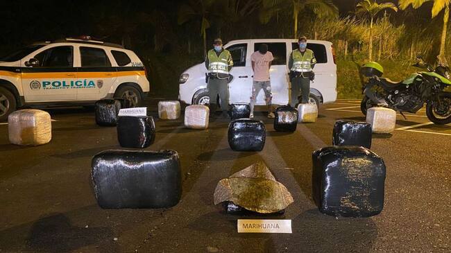 La incautación tuvo lugar en la vía Cerritos - Pereira cuando uniformados de la Policía Nacional registraron un vehículo que había partido desde el municipio de Jamundí (Valle del Cauca) y tenía como destino la capital risaraldense. En el automotor fueron encontrados 256 kilogramos de marihuana, los cuales representan 25.600 dosis de esa sustancia estupefaciente.
