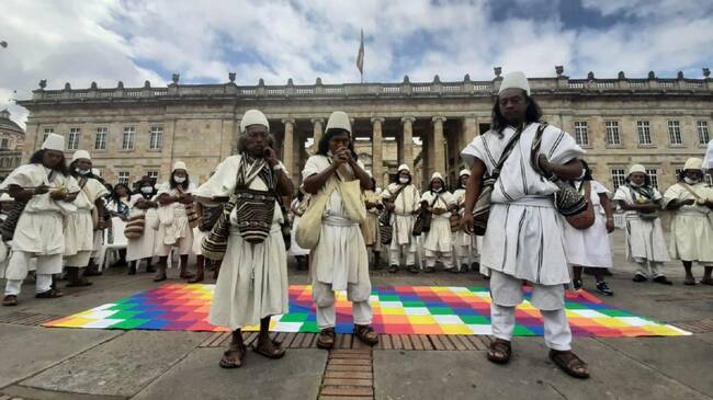 Desde las 9 de la mañana de este martes 9 de noviembre los pueblos indígenas de la Sierra Nevada de Santa Marta, llegaron por primera vez a la capital del país en respuesta según ellos, a la estrategia sistemática de división política y del territorio.
