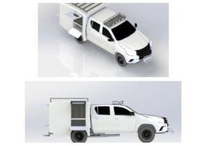 Es una Ford doble cabina, cuatro puertas, que se adecuó con seis compartimentos para animales pequeños y uno para grande.