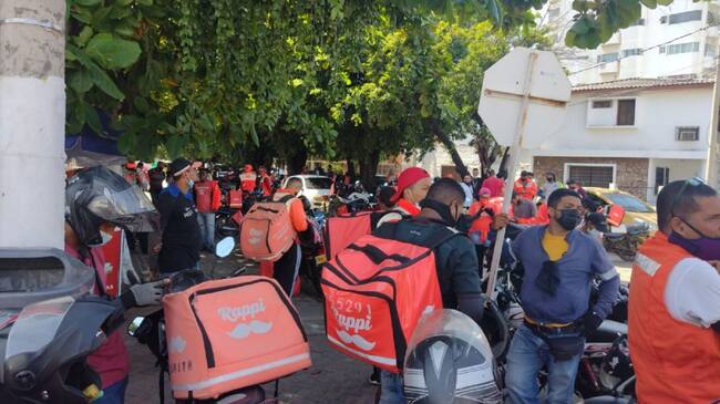 Más de 300 rappitenderos salieron a protestar por varias vías principales de Cartagena para visibilizar los presuntos problemas laborales que tienen actualmente y la falta de atención por parte de funcionarios de esa aplicación en la ciudad.