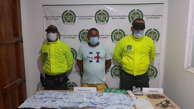 El aprehendido fue identificado por las autoridades como Carmelo de Jesús Flórez Bastidas, de 50 años de edad, residente en la manzana B casa 4 del barrio Primero de Mayo, lugar donde se realizó el allanamiento y a quien según las autoridades le fue incautado 1 Revolver, 1 cuaderno con cuentas del chance, 6 talonarios de chance en blanco con razón social "Inversiones la candelaria", 1 almohadilla para sellos, 3 tinteros para almohadillas de sellos y 45 mil pesos en efectivo.