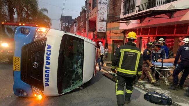 El accidente ocurrió en el barrio Mánchester de Bello. Según los organismos de socorro, la ambulancia que es propiedad del hospital Marco Fidel Suárez salió hacia otro centro asistencial con el paciente, perdió el control y se volcó. Cuatro personas, incluyendo el conductor del vehículo resultaron heridas.