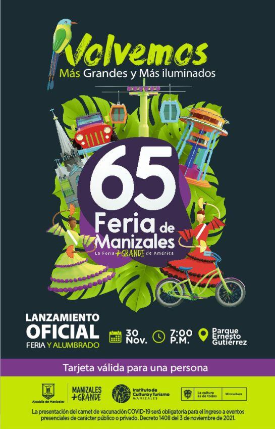 En el encuentro se dará a conocer la programación de la 65 Feria de Manizales. La asistencia es gratuita con carné de vacunación.