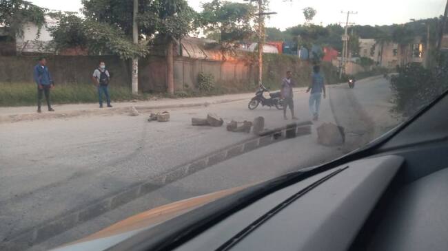 Los habitantes realizaron una manifestación ante el mal estado de la malla vial por el constante paso de vehículos pesados(Cortesía habitantes barrio Arroz Barato)