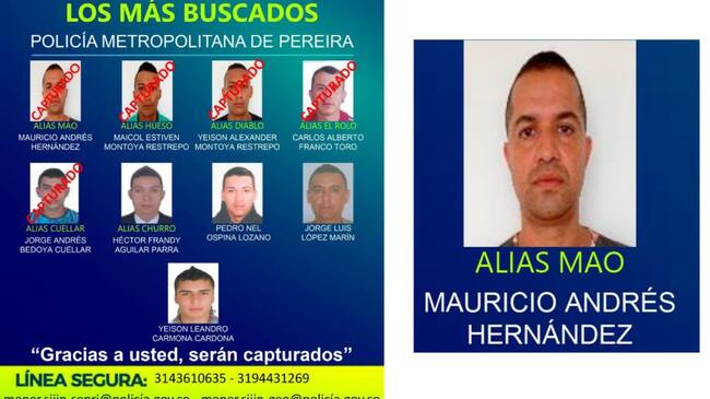 "Esta persona capturada sería el presunto coautor de un triple homicidio ocurrido el 30 de mayo del presente año en Nacederos de la ciudad de Pereira. Es importante resaltar que con esta captura hemos llegado a cinco de los hombres más buscados por los delitos de homicidios", puntualizó.
