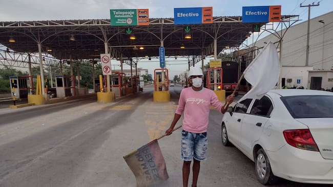 En medio de tensiones el grupo de personas que impide los cobros en el peaje La Heroica, zona industrial de Mamonal en Cartagena, continúa agitando sus banderas con el objetivo de mantener las talanqueras arriba.