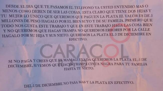 Fue el caso de uno de los afectados, quien nos envió el panfleto con que intimidaron a un familiar suyo, quien era propietario de una tienda por más de 30 años, ubicada entre la calle 34 con carrera 29, y que tuvo que marcharse a raíz de las constantes intimidaciones de los delincuentes, los cuales lo amenazaron de no atentar contra su vida o la de sus familiares con tal de pagar una suma de dinero.