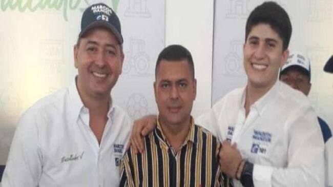 En la imagen se observa a Arístides Agámez Pineda, registrador de San Antero, en compañía de los candidatos Marcos Daniel Pineda García y Wadith Manzur Imbett, del partido Conservador.