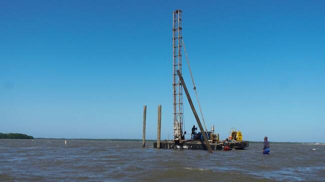 Avanza la instalación de pilotes en la ciénaga de Mallorquín