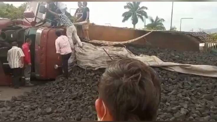 El vehículo quedó en un carril y el carbón cayó en el otro sentido, obstaculizando la movilidad de automotores.