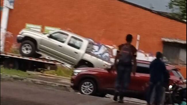 “Mire, subieron la camioneta a la grúa y la golpearon, la golpearon subiéndola acá a la glorieta”, indica la persona que grabó el video.