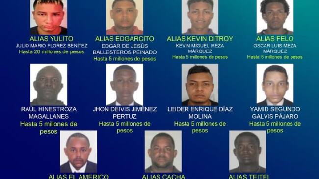 “Queremos decirle a la opinión pública que ofrecemos confidencialidad y absoluta reserva, a las personas que entreguen información de las personas ubicadas en estos carteles de los más buscados”, puntualizó el comandante de la metropolitana de Cartagena.