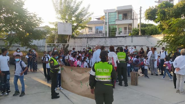 Policía acompaña a estudiantes en regreso a clases en Cartagena