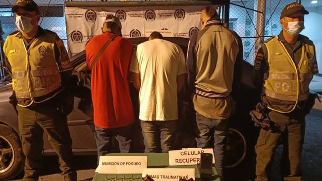 Otro individuo los esperaba en el automotor para emprender la huida con rumbo a la ciudad de Pereira, por lo que de inmediato se dio aviso a las autoridades que activaron un plan candado y lograron interceptarlos en el peaje.