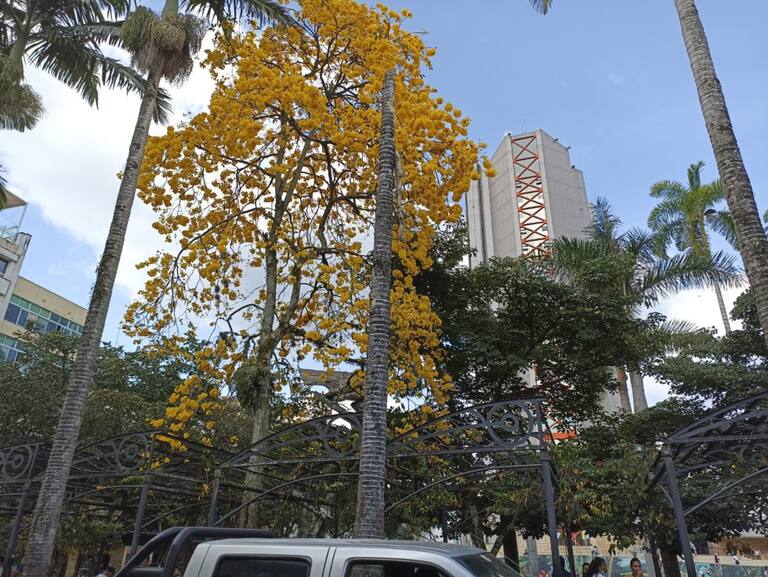 Guayacán florecido en la plaza de Bolívar de Armenia