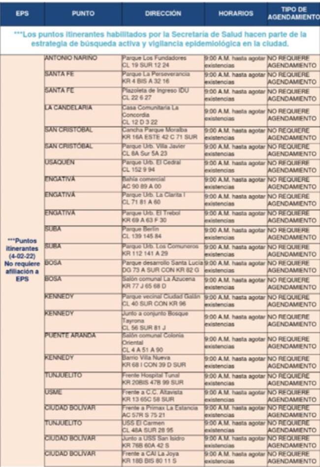 Puntos de toma de muestra PCR en la ciudad. / Alcaldía de Bogotá