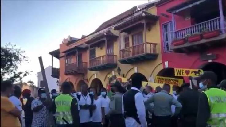 Uniformados de la Policía Metropolitana de Cartagena debieron evitar un enfrentamiento mayor entre el gremio de cocheros, y los participantes de un plantón pacífico que se realizaba en la tradicional Plaza de los Coches del centro histórico.
