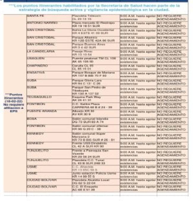 Para esto no es necesario agendar cita previa, solo se debe acudir al lugar habilitado en su localidad, con el documento de identidad y cumpliendo todas las medidas de bioseguridad, como el uso de tapabocas de nariz a mentón y el distanciamiento social. Las pruebas se realizan hasta agotar los recursos disponibles para la jornada.