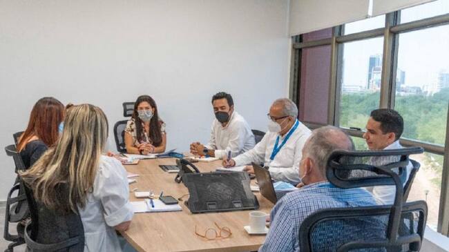 Con el gobernador de Bolívar, Vicente Antonio Blel, la reunión tuvo como finalidad la revisión del avance de los proyectos en los sectores de educación y salud, que la Entidad tiene en marcha en el departamento.