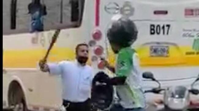 VIDEO: Con un bate, un busero agredió a un motociclista en Girardota
