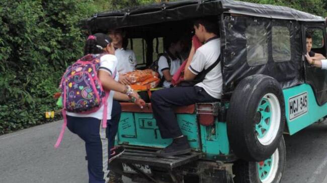 Estudiantes en Combia se movilizan en jeeps por falta de transporte escolar