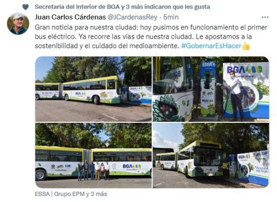 El primer bus eléctrico del sistema masivo de transportes de Bucaramanga, comenzó a rodar por la ciudad. El Área Metropolitana informó que "terminó la cuenta regresiva" dentro del propósito de aplicar el concepto de sostenibilidad en materia de traslado de pasajeros.