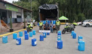 De otro lado, dos hombres fueron capturados por el delito de tráfico de insumos para el procesamiento de narcóticos, integrantes de la Policía de Tránsito y Transporte realizaron la captura de dos sujetos de 24 y 40 años de edad respectivamente en el municipio de La Tebaida, quienes se desplazaban en vías nacionales.