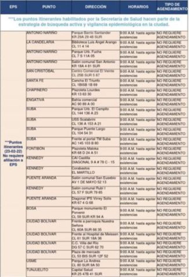 Puntos de toma de muestra PCR gratuita en Bogotá. / Alcaldía de Bogotá