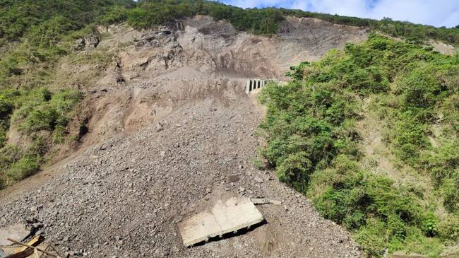 La vía en este tramo se encuentra cerrada. Según el reporte, se desprendieron 40 mil metros cúbicos de tierra aproximadamente,