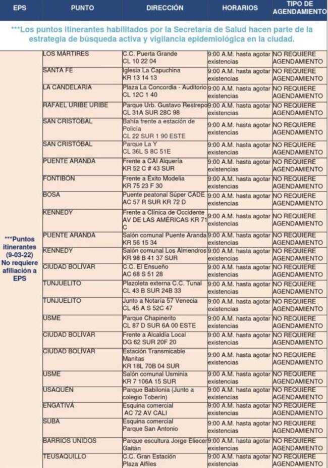 Puntos de toma de muestra PCR en Bogotá. / Alcaldía de Bogotá