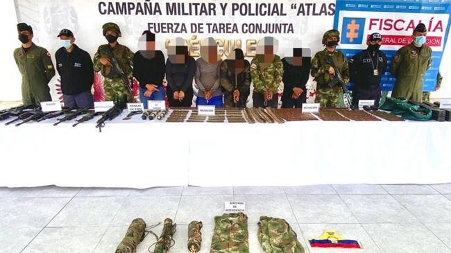 Entre el material decomisado hay siete fusiles, una ametralladora, una pistola, 12 granadas de mano, 52 proveedores, abundante munición de diferentes calibres y material de comunicaciones e intendencia que fueron puestos a disposición de la autoridad competente.