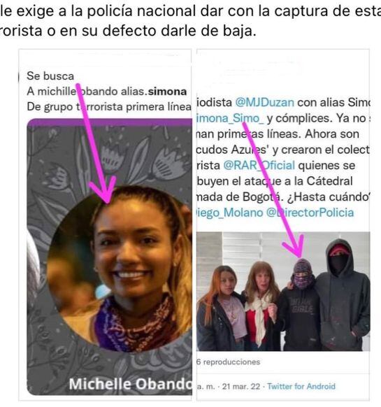 La abogada y excandidata a la Cámara de Representantes por el Valle del Cauca, Michelle Obando, ha sido señalada a través de redes sociales de ser alias “Simona” quien protagonizó el pasado domingo un ingreso abrupto a la Catedral Primada de Colombia mientras se llevaba a cabo una eucaristía.