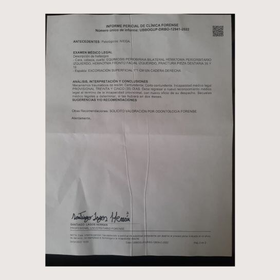 El informe de Medicina Legal confirmó que Luis López presenta diversos hematomas en la cara, así como dos fracturas, por esta razón le dieron una incapacidad de 35 días.