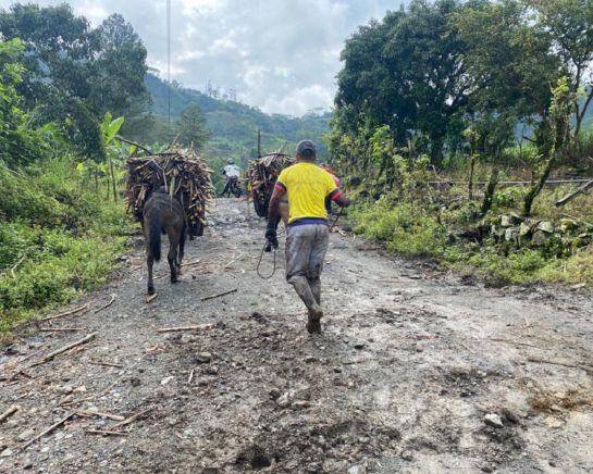 La dramática situación de ella y otras familias se suma a la de los agricultores que en plena cosecha de caña, café, aguacate y plátano se arriesgan a sacarla a lomo de mula por los reducidos espacios que quedaron servibles por la vía principal, otros como Segundo Bautista Zambrano se resignan a perderlo porque en su caso es imposible.