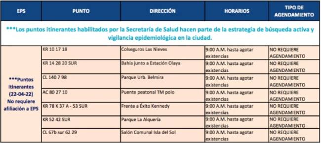 Puntos de toma de muestra PCR gratuita en Bogotá. / Alcaldía de Bogotá