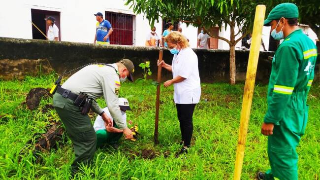 Policía realizó en Mompox "Siembratón, salva tu planeta"