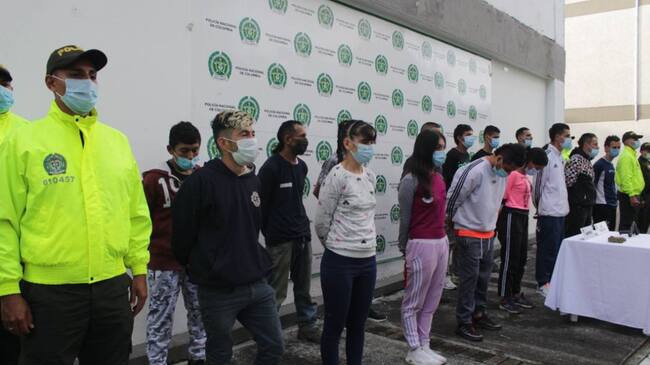 Los detenidos fueron identificados como: Cesar Augusto Oviedo Rojas, Brayan Alberto Valbuena Cadena, Yoan Sebastián Valbuena Cadena, Anderson Mauricio Vega Sánchez, Jonathan Alberto Cifuentes Vargas, Haider Camilo López Capera Calavera, Gonzalo Zamora Castaño, José Arvey Reyes Navarro, Diego Armando Pava Buitrago, Ingrid Viviana Leiva Sáenz, María Camila Montenegro Acosta, Jhonatan Camilo Briñez Murcia, Nini Johana Suarez Rodríguez, Michael Stiven Marulanda Forero, Pedro Luis Castro Domínguez, Raúl Eduardo Ramírez Mendivil y Sergio Fernando Betancourt Valderrama.