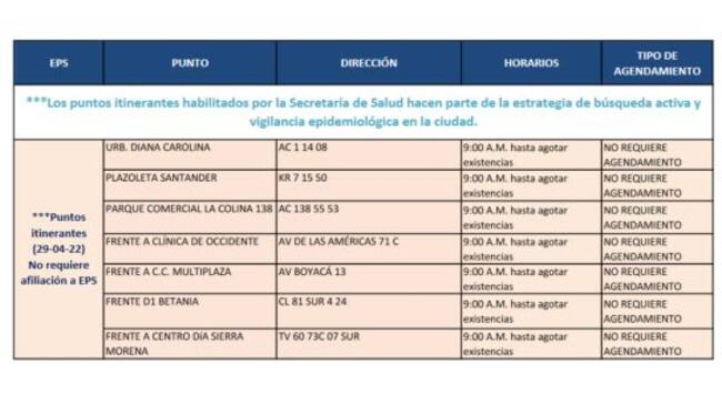 Los puntos itinerantes estarán disponibles desde las 9:00 a.m. hasta agotar las existencias disponibles para la jornada.