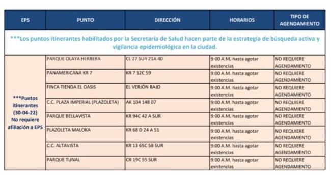 La Secretaría de Salud habilitó ocho puntos en las diferentes localidades de Bogotá para acceder a este servicio.