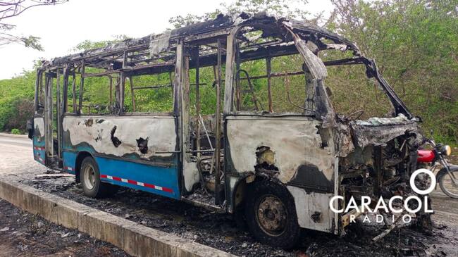Al menos quince pasajeros fueron obligados a bajarse del vehículo y posteriormente dos individuos le prendieron fuego en medio de paro armado.