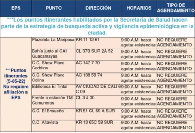 Puntos de toma de muestra PCR gratuita en Bogotá. / Alcaldía de Bogotá